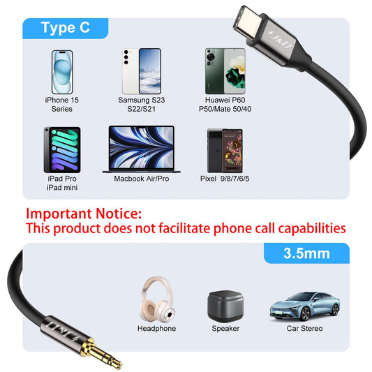 J&D USB Type C to 3.5mm 1/8 inch Audio Aux Cable