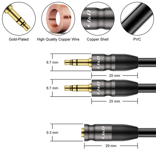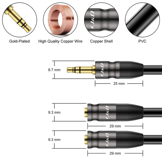 J&D 3.5mm to Dual RCA Audio Cable, Gold Plated, Stereo Adapter