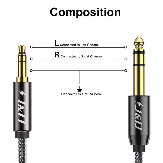 3.5 mm TRS Male to 6.35 mm TRS Male Stereo Audio Cable with Nylon Braid