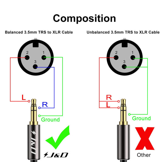 XLR Female to 1/8 inch TRS Male Balanced Microphone Cable