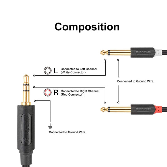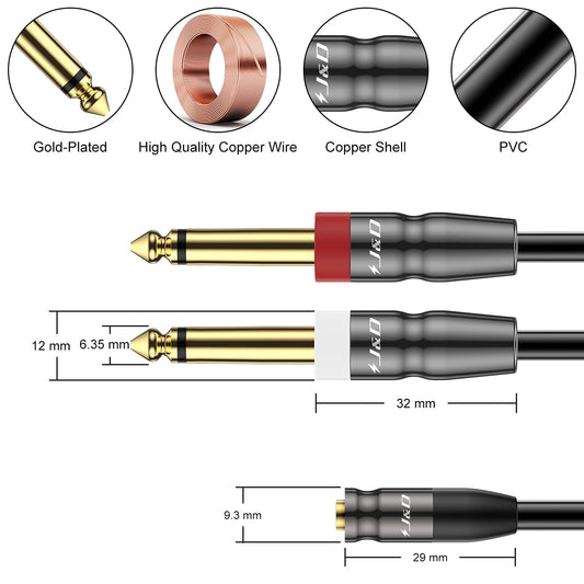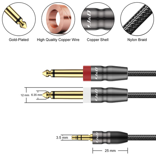 Gold-Plated 3.5 mm TRS Male to Dual 6.35 mm TS Male Mono Stereo Cable