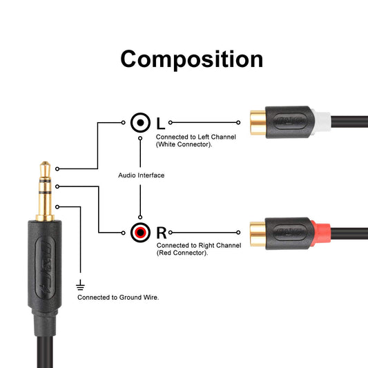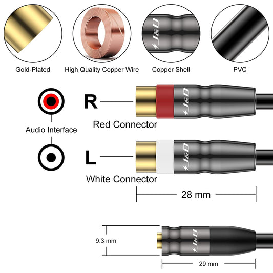 1/8 inch Female to 2 RCA Female Stereo Audio RCA Cable Adapter