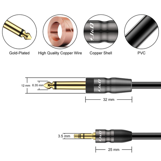 6.35mm TS to 3.5mm TRS Cable M/M Mono Instrument Cable