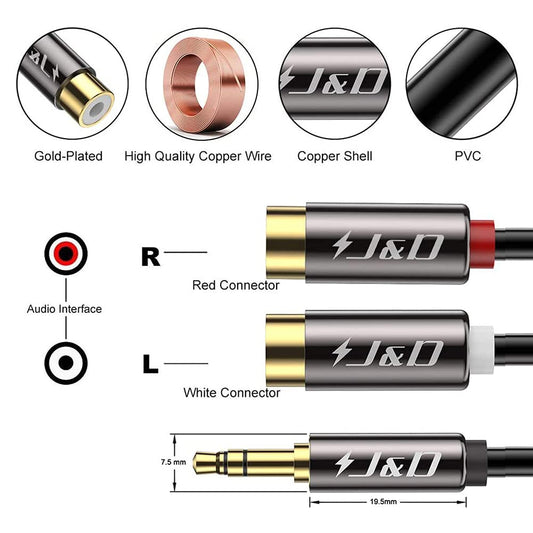 1/8 inch to 2 RCA M/F Stereo Audio Extension Cable