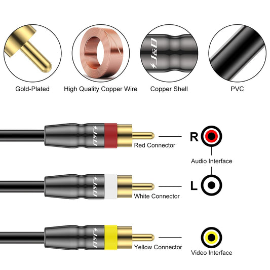 3RCA Male to 3RCA Male Stereo Audio Cable