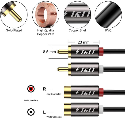 2RCA Male to 2RCA Female Stereo Audio Cable