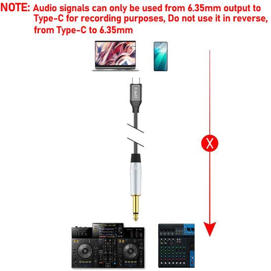 USB Type C to 6.35 mm 1/4 inch Male TS Mono Audio Cable