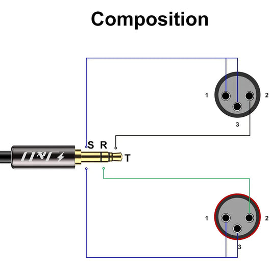 2 XLR Female to 3.5mm TRS Male Unbalanced Stereo Audio Cable
