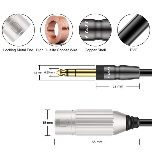 6.35 mm 1/4 inch TRS Male to XLR Female Balanced Interconnect Cable