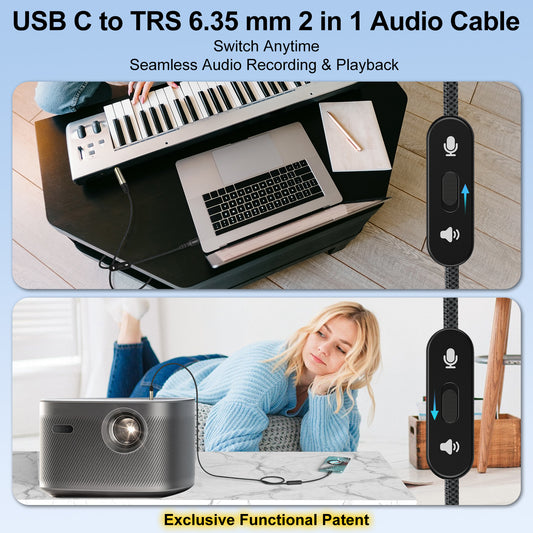 USB C to 6.35mm Cable, 2-in-1 Audio Cord, TRS Stereo with Switch, 6.6ft, Black