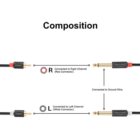 Cavo per altoparlanti audio stereo doppio da 1/4 di pollice da TS a doppio RCA M/M