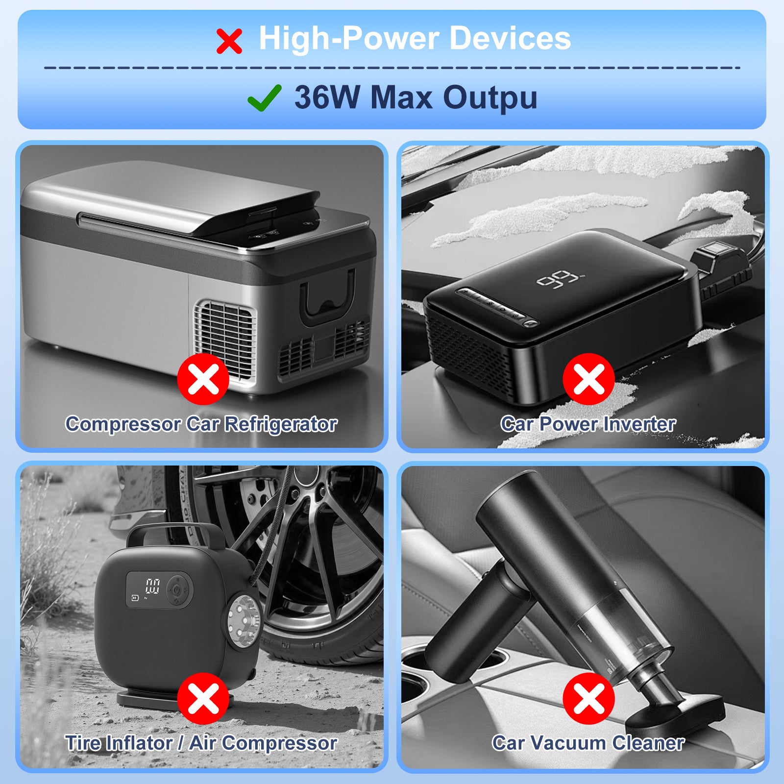 Stable and Safe Power Output: Delivers up to 36W with a 12V input and 3A current, ensuring reliable power with built-in protections against short circuits, over-voltage, and over-current; note: full 36W output is only achievable with PD protocol; standard ports provide only 10W–12W