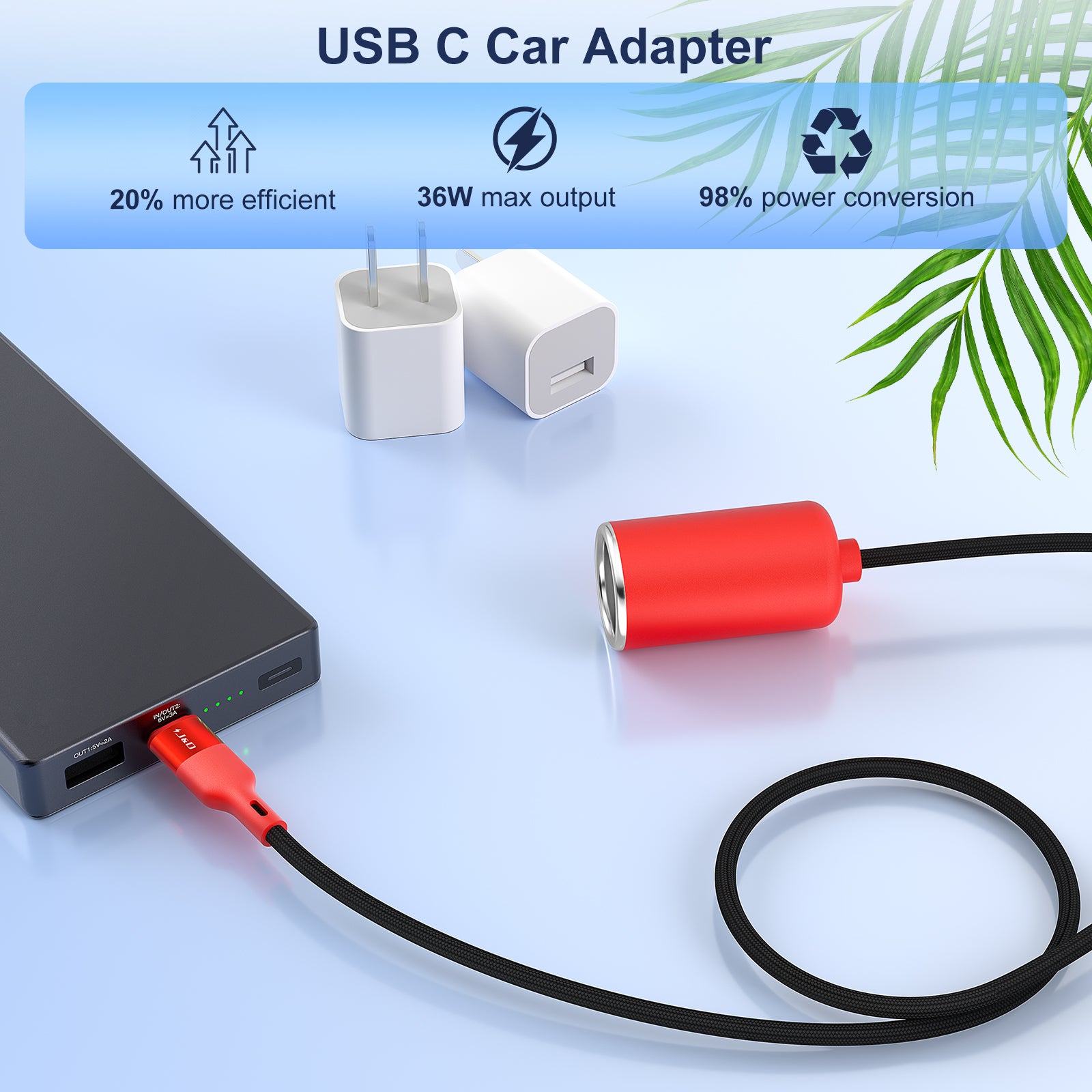 Efficiency Upgrade: Compared to standard USB C cigarette lighter adapters, this model improves power conversion efficiency by over 20%, reaching more than 98%