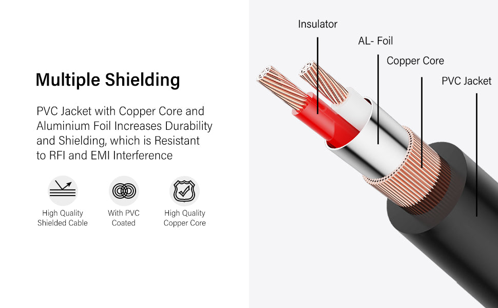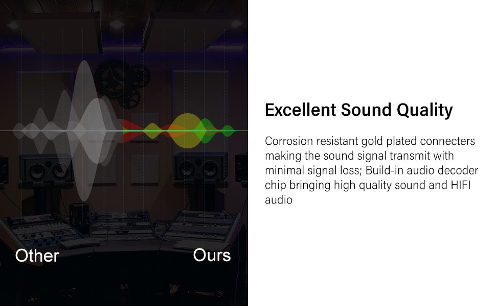 - Excellent Sound: Dual shielding, corrosion resistant gold plated connecters making the sound signal transmits with minimal signal loss